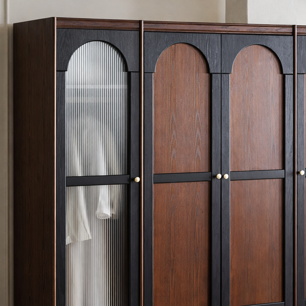 Modern Wooden Wardrobe Armoire With Arched Panel Doors And Storage Drawers For Bedroom