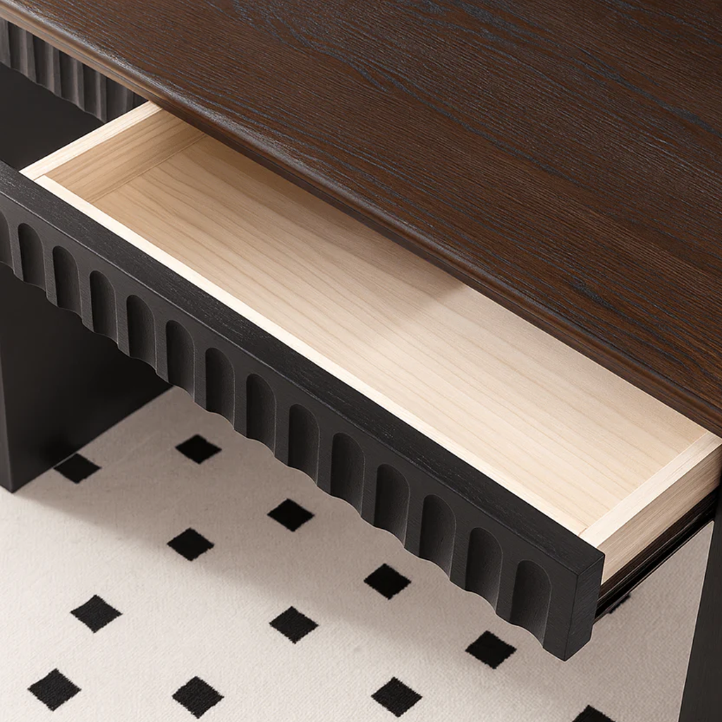 - Bright, windowed spaces where a dark table can anchor the room