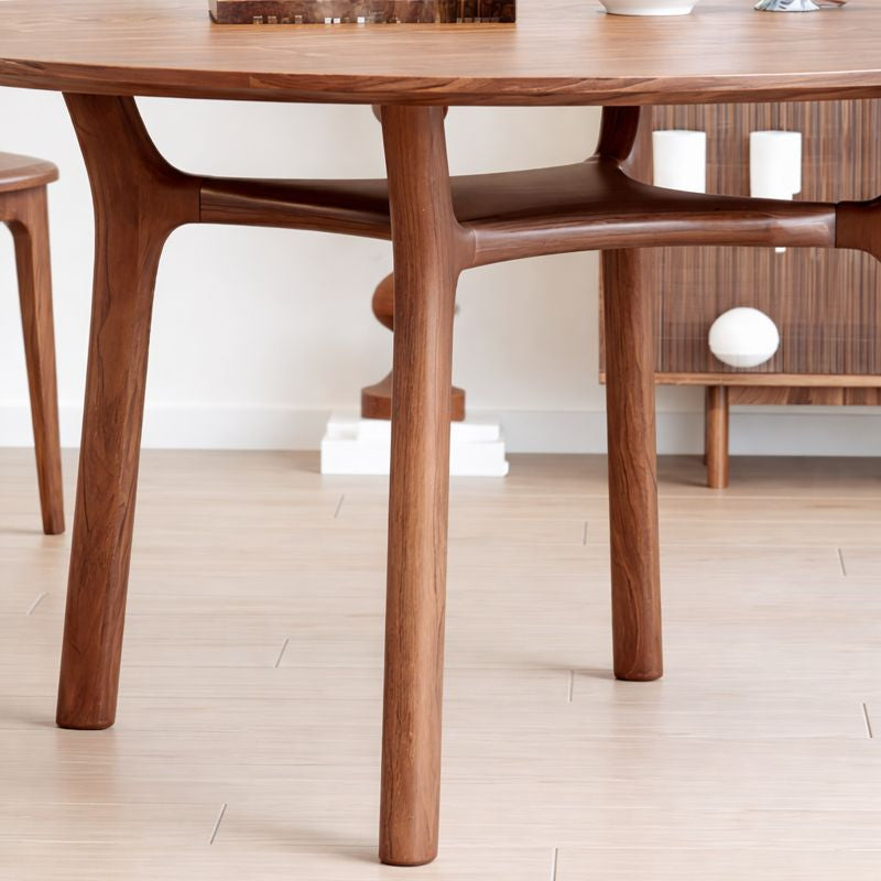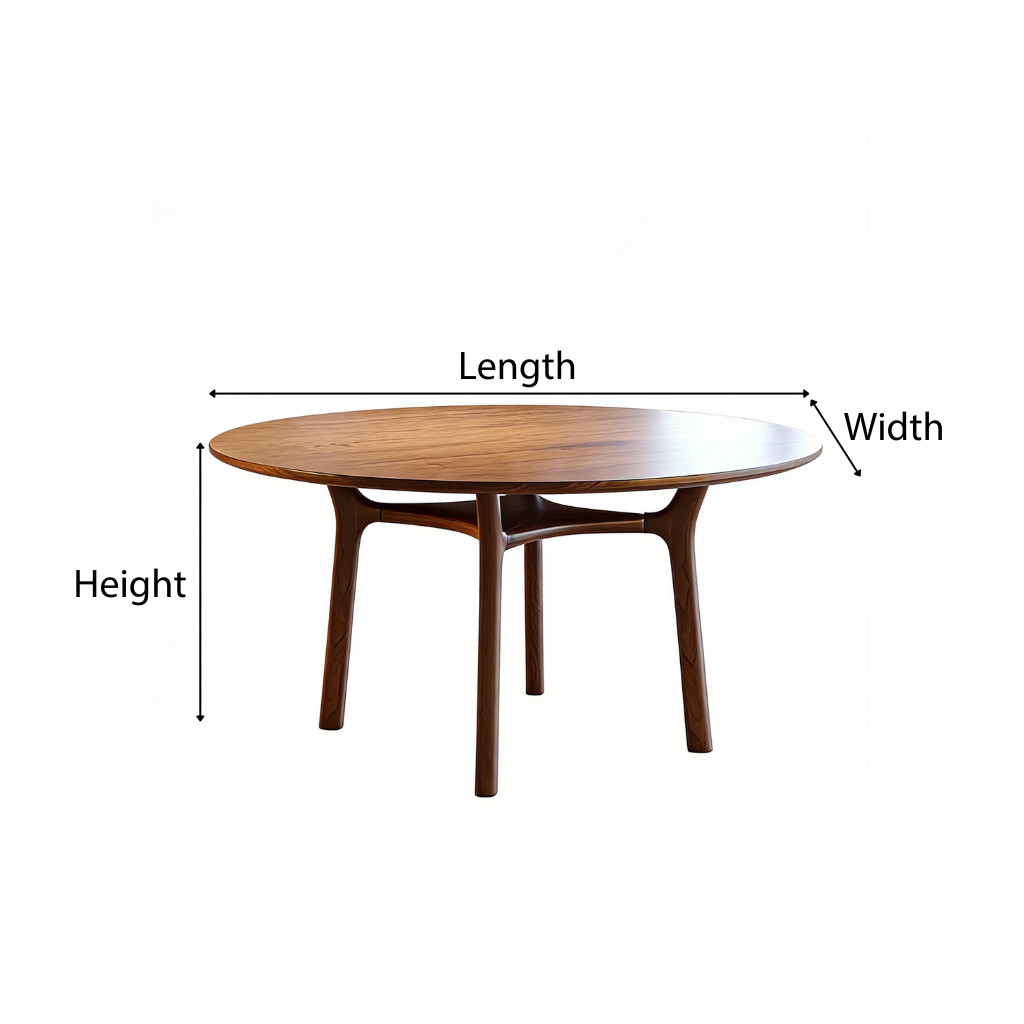 This dining table features a smooth round tabletop with softly eased edges for a clean, refined look. The natural wood grain adds warmth and subtle texture, making it easy to style with simple centerpieces, placemats, or a statement bowl.