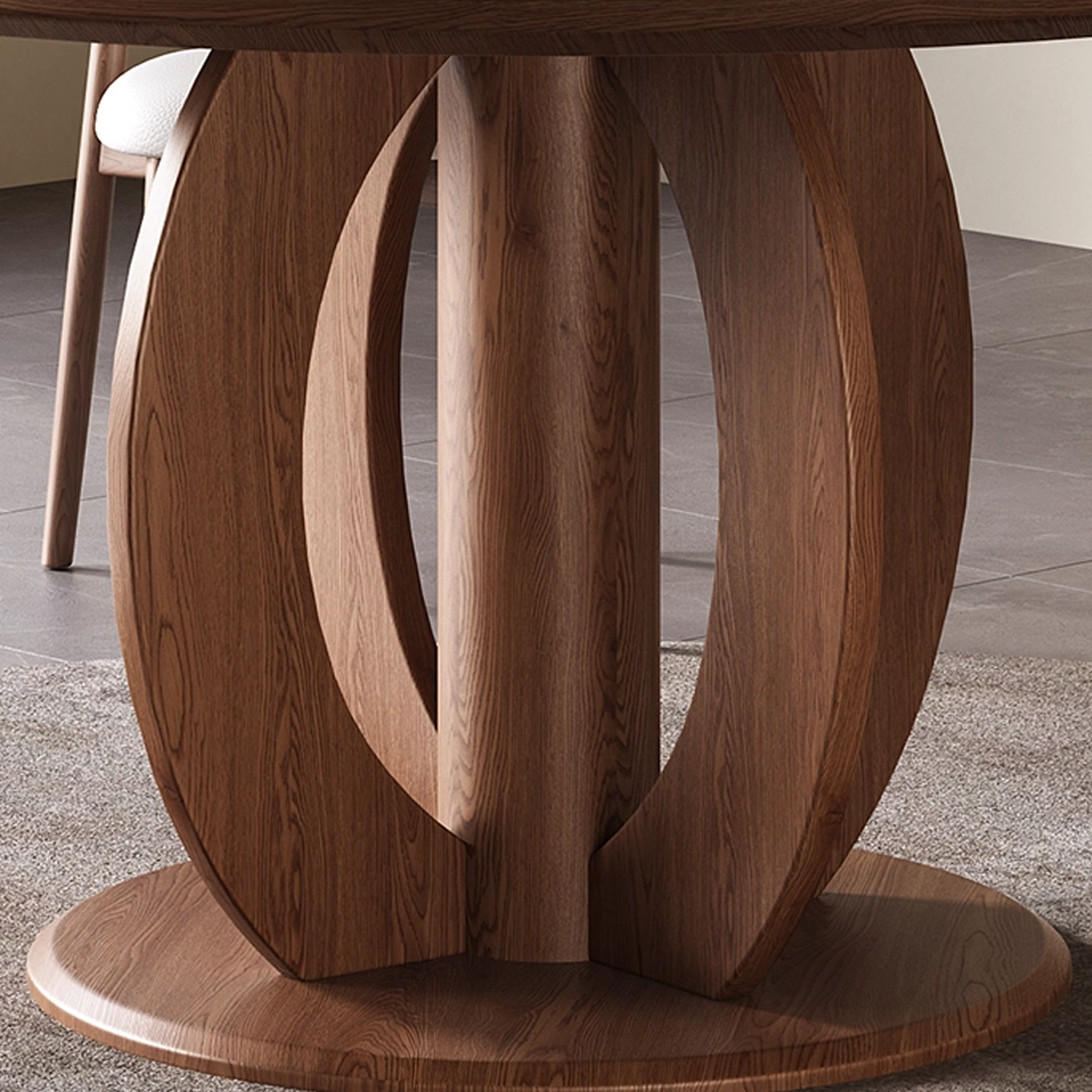 Modern Wooden Round Dining Table With Contrast Center Top And Pedestal Base For Dining Room