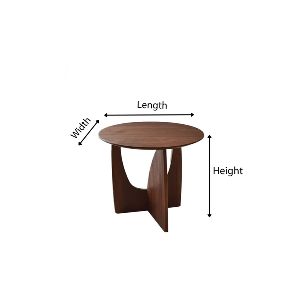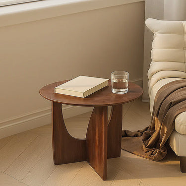 Modern Wooden Round Side Table With Sculptural Cut-Out Base