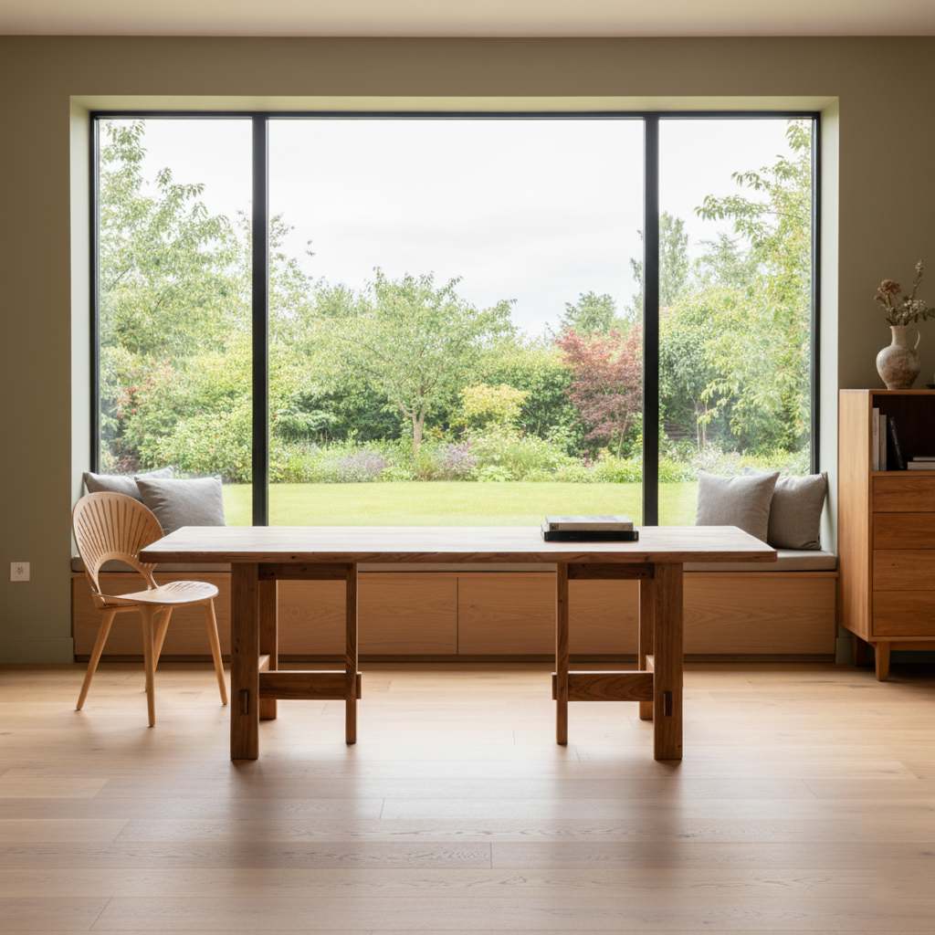 - Dining rooms styled with farmhouse, rustic, or Japandi décor