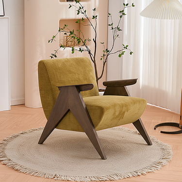 Bring modern warmth and relaxed comfort to your living space with our Modern Wooden Accent Chair For Living Room. With its clean angled frame, soft cushions, and compact footprint, this accent chair adds both style and an inviting place to unwind.