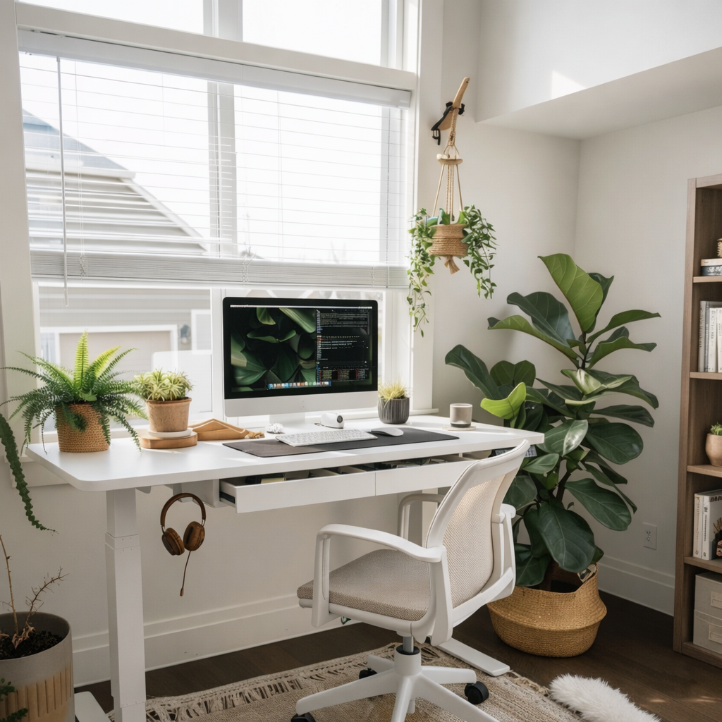 Style it with a desk lamp, monitor riser, and a simple organizer tray for a polished home office finish.