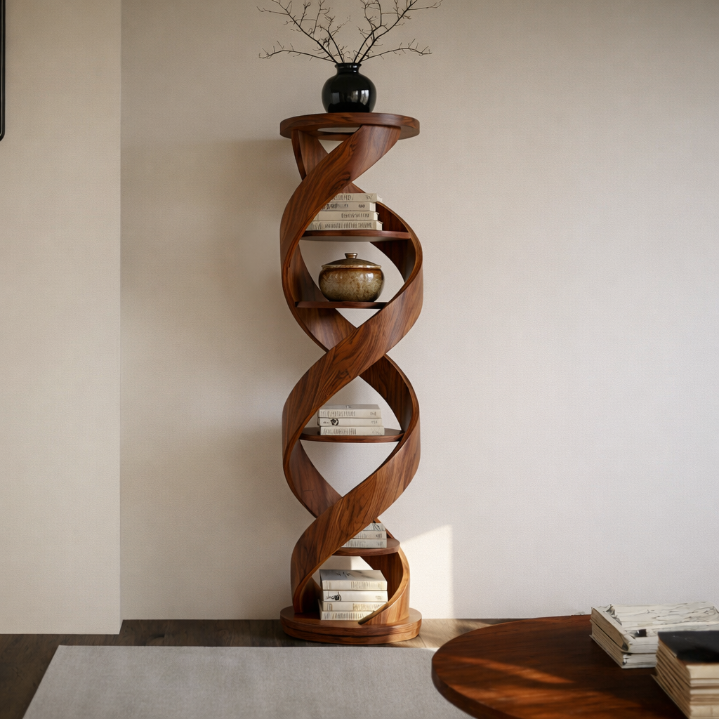 Modern Wooden Spiral Bookcase With Sculptural Helix Frame For Home Office